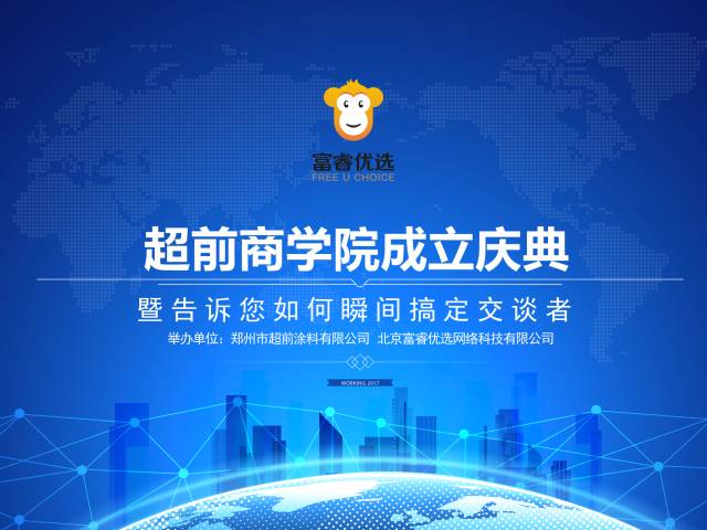 2017年04月19日,超前商學院成立揭牌啟動大會在鄭州隆重召開,鄭州市超前涂料董事長、北京富睿優(yōu)選選董事長—閻運鋒,人社部高級人力資源管理師、WFA國際促動師協(xié)會行動學促動師—代志杰,中國智慧策略應(yīng)用專家、企業(yè)運營管理專家、飛漲策略(北京)品牌管理有限公司董事長—董建明等50多位企業(yè)家與公司員工出席本次活動。